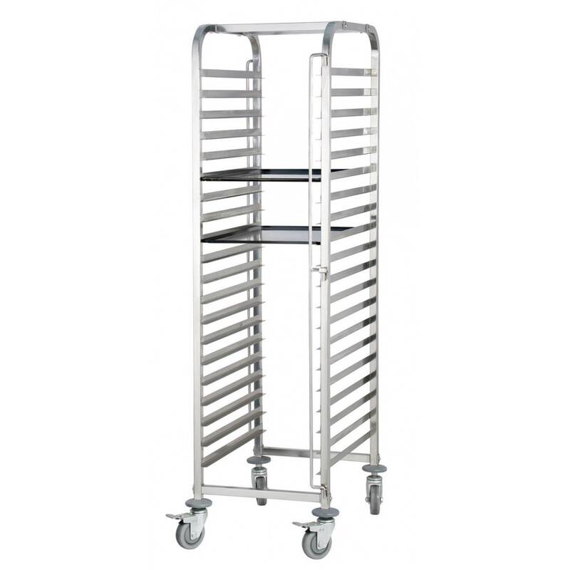 Ανοξείδωτο τρόλεϊ δίσκων 60x40 εκ. 15 θέσεων για λαμαρίνες φούρνων και ζαχαροπλαστείων.