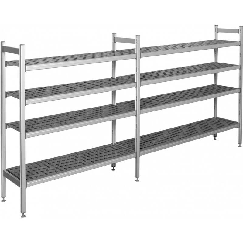 Σύστημα επαγγελματικών ραφιών με σκελετό από ανοδιωμένο αλουμίνιο και διάτρητα πλαστικά σχαράκια από ανθεκτικό ΑΒS.