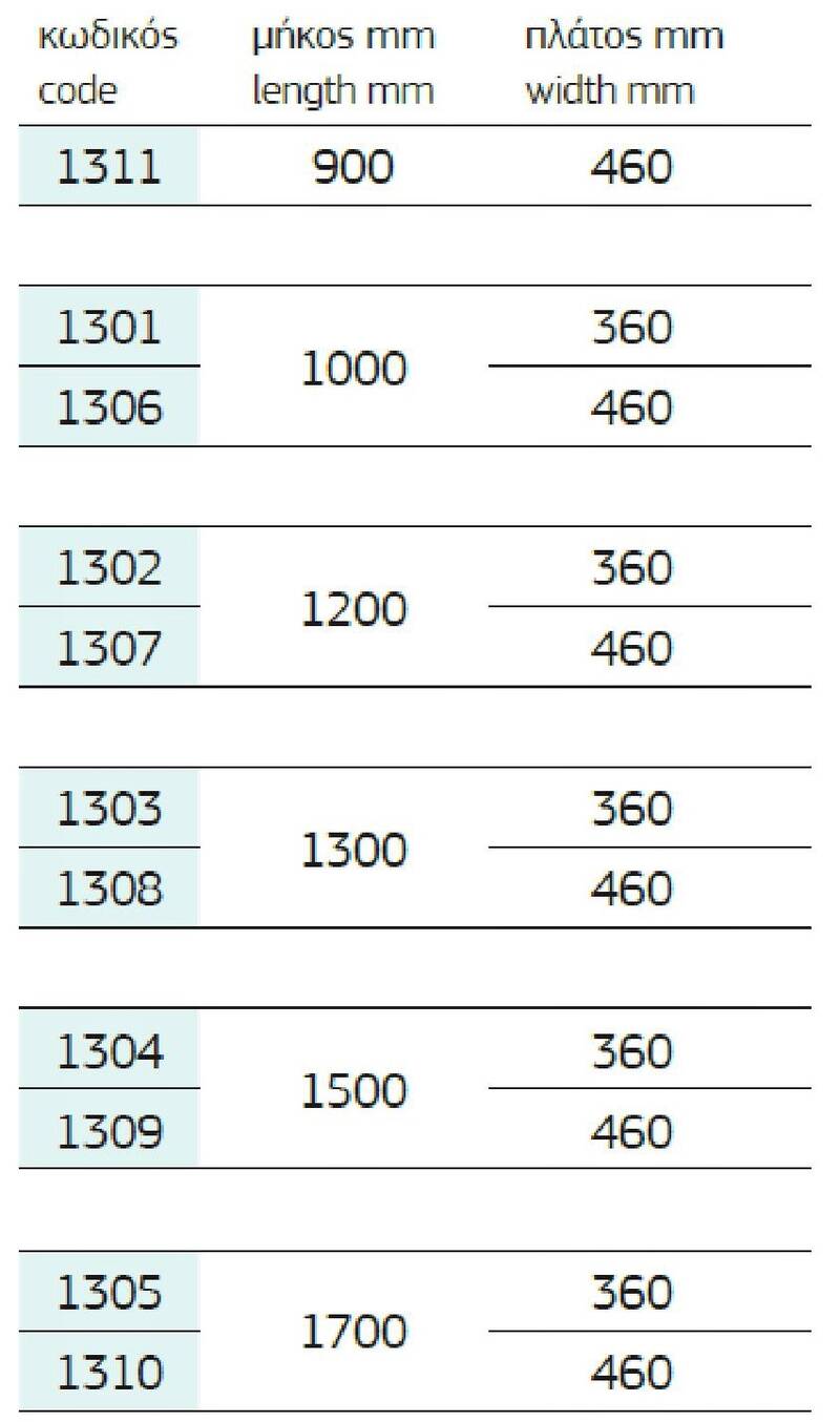 Σε 2 πλάτη 360 mm και 460 mm.