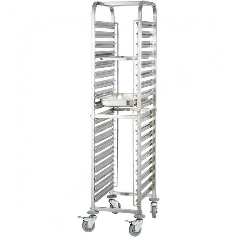 Ανοξείδωτο τρόλεϊ δίσκων GN 1/1 για μεταφορά φαγητού ή για προετοιμασία φαγητού σε χώρους εστίασης.